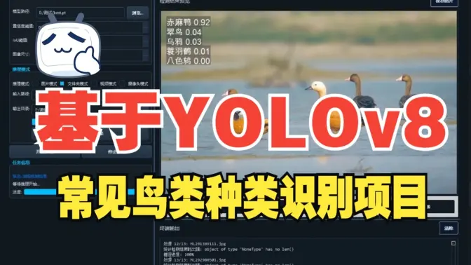 本项目集成了 YOLOv8 目标检测模型 与 PyQt5 图形界面工具,实现了包括 图片 / 文件夹 / 视频 / 摄像头 等多种输入方式的鸟类识别功能。