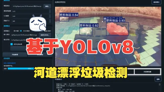 本项目基于 YOLOv8 目标检测算法,构建了一套 河道漂浮垃圾智能检测系统,可对河面常见漂浮垃圾(如塑料瓶、泡沫、包装物等)进行实时、精准识别与定位。系统集成 PyQt5 可视化界面,支持图片、视频、文件夹及摄像头等多种输入方式,具备良好的易用性与工程化落地能力。