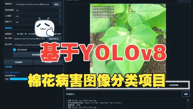 在此背景下,本项目以 YOLOv8 图像分类能力 为核心,结合 PyQt5 桌面端界面开发,从工程实战角度出发,完整展示了一个棉花病害分类系统从“数据集 → 训练 → 推理 → 可视化应用”的全流程实现,旨在为农业 AI 初学者、科研人员及工程开发者提供一个可直接参考和复用的实践范例。