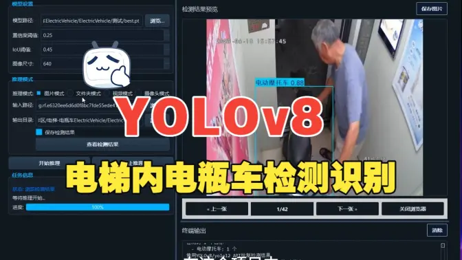本项目基于YOLOv8实现了电梯内电瓶车检测识别系统,通过构建高质量的数据集、优化模型训练和部署流程,实现了对电梯内电瓶车和自行车的高精度、实时检测。该系统的应用可以有效预防电瓶车在电梯内起火等安全事故,提高电梯管理的智能化水平,为居民的生命财产安全提供保障。